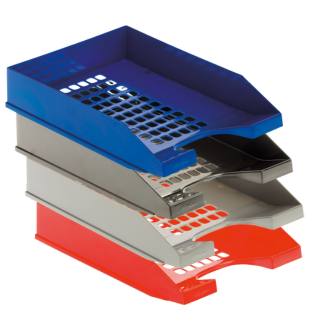 Diferentes opciones en bandejas con apilamiento perfecto, en vertical o escalonadamente. Modelos con fondo liso o rejilla y en diferentes acabados para organizar los documentos con color y estilo.