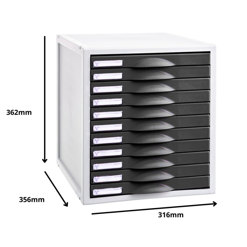 Los módulos de cajones disponen de 3 tipos de cajones: de 22 mm (medidas interiores: 322 x 265 x 22 mm), de 52 mm (medidas interiores: 322 x 265 x 52 mm) y de 82 mm (medidas interiores: 322 x 265 x 82 mm)