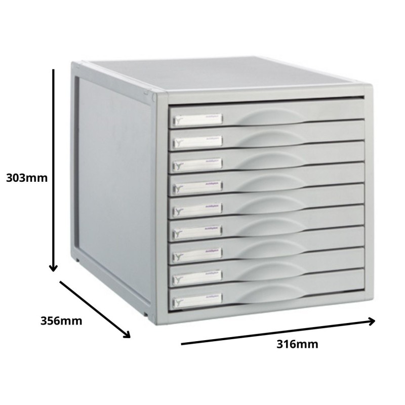 Los módulos de cajones disponen de 3 tipos de cajones: de 22 mm (medidas interiores: 322 x 265 x 22 mm), de 52 mm (medidas interiores: 322 x 265 x 52 mm) y de 82 mm (medidas interiores: 322 x 265 x 82 mm)