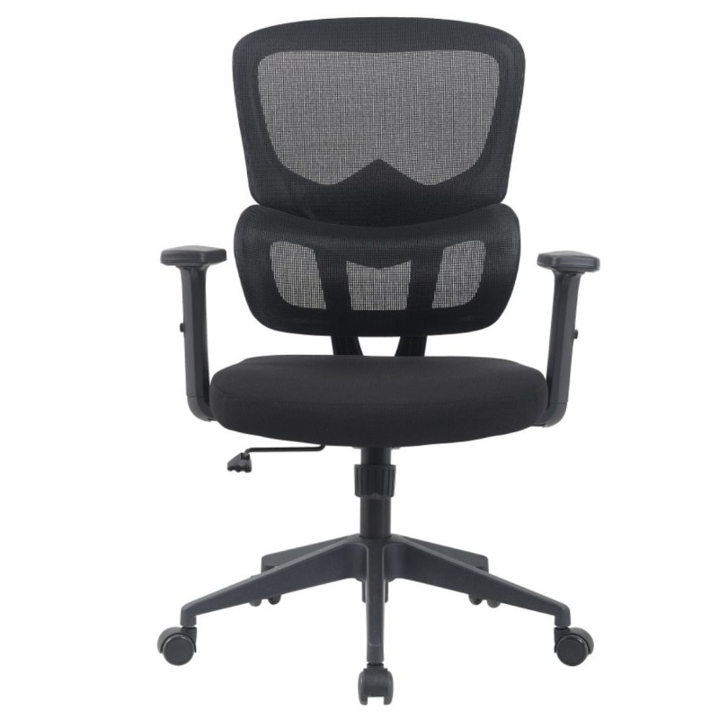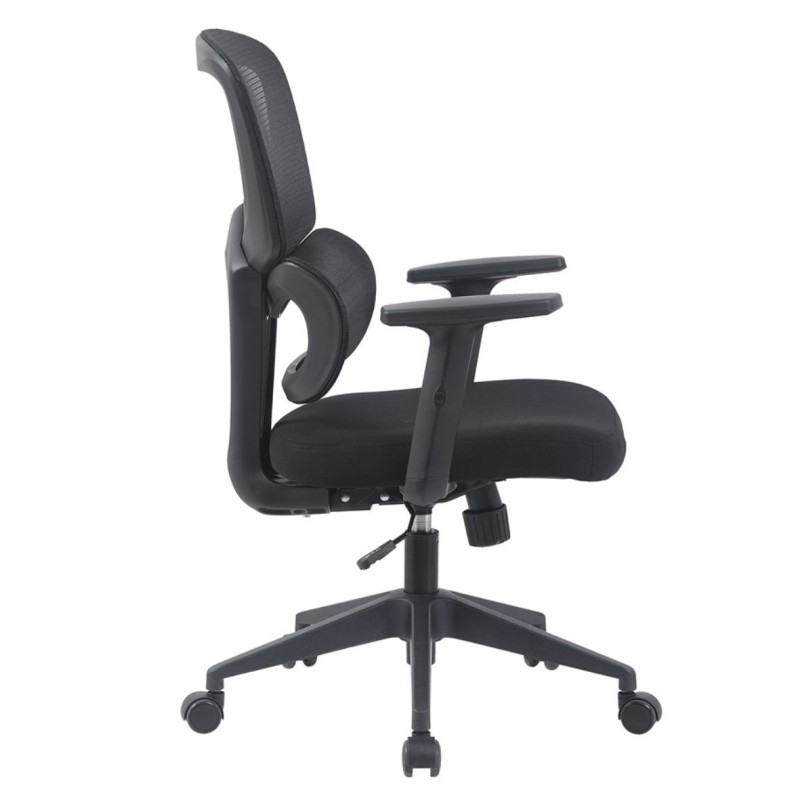 Respaldo ergonómico de malla transpirable y refuerzo lumbar ajustable en la zona baja de la espalda