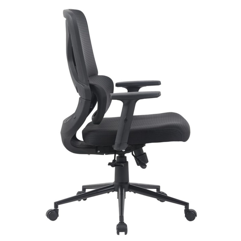 Respaldo ergonómico tapizado en suave malla y transpirable